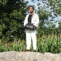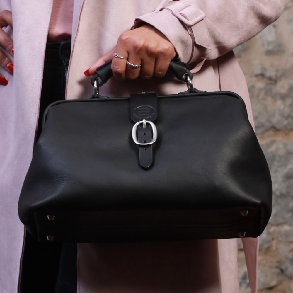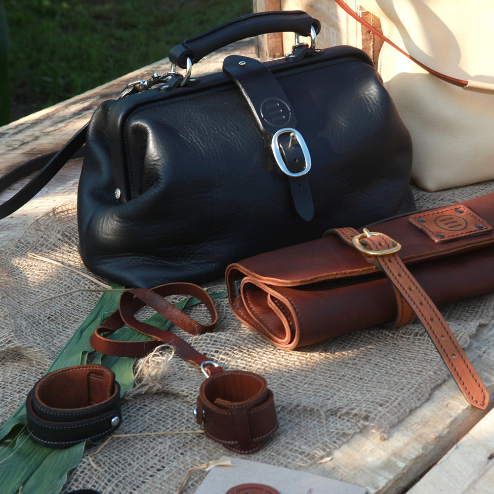 With metal hinges and feet, our doctor bag is a modern take on an old-time classic. Big pockets, one inside and one out, and a lanyard make it as practical as it is attractive. The shoulder strap is detachable.